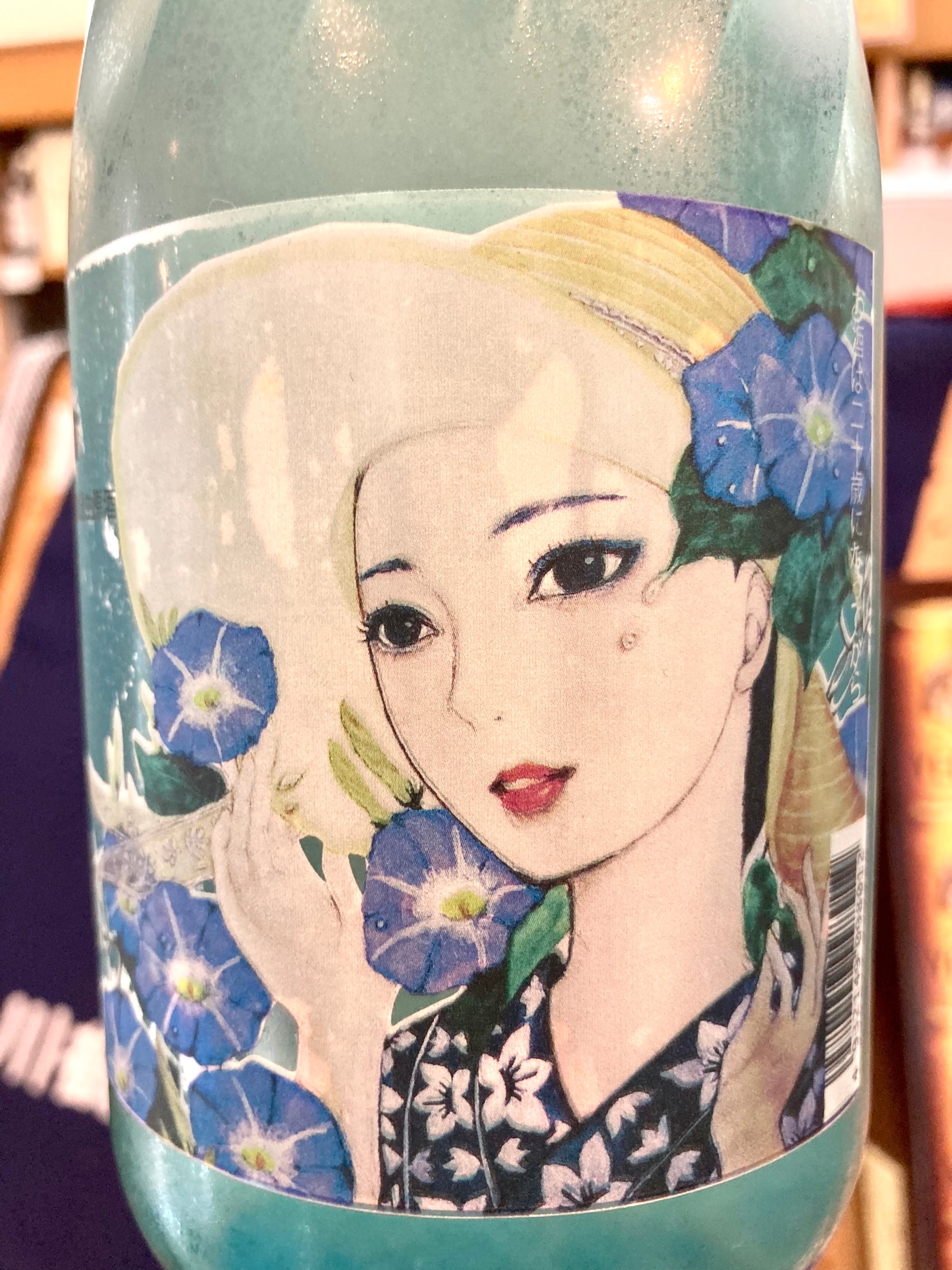 涼やかなブルーのレトロ瓶と上品な美人画のラベルに良くあった印象です♫