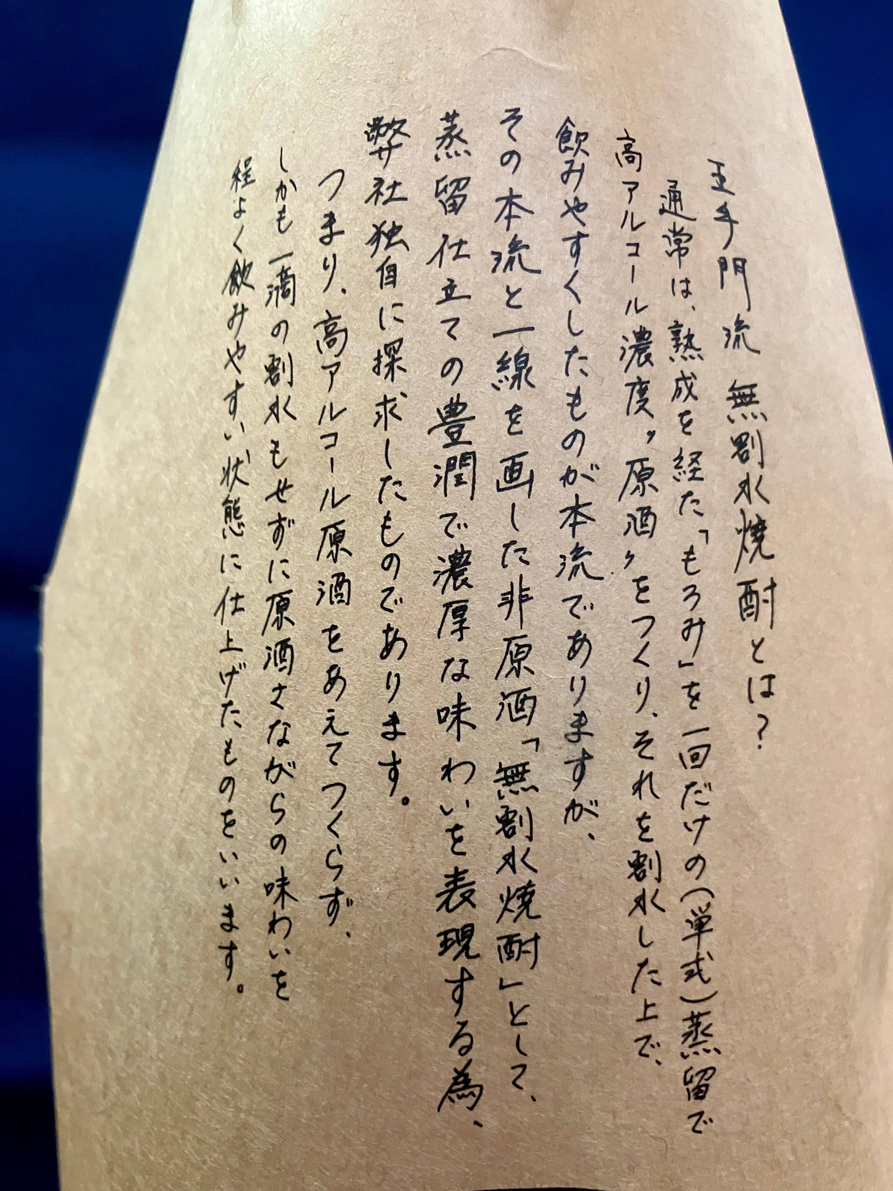 通常は割水をしてアルコール度数を調整しますが、この「#まだこ」は一切割水をせずに30度という度数に蒸留し豊潤で濃厚な味わいに仕立てられています。