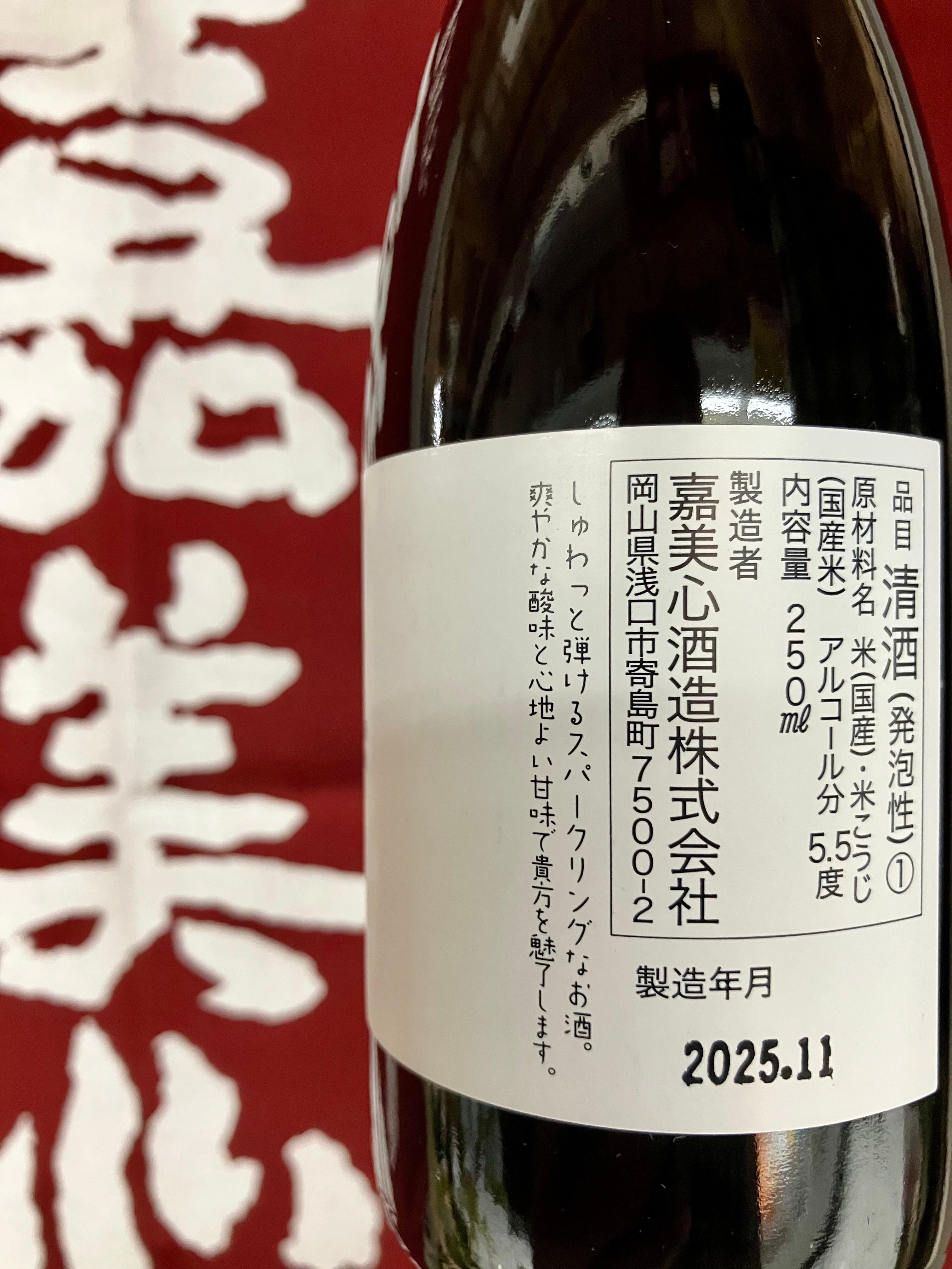 岡山県【嘉美心酒造】☆『嘉美心 しゅわしゅわ 250ml』
