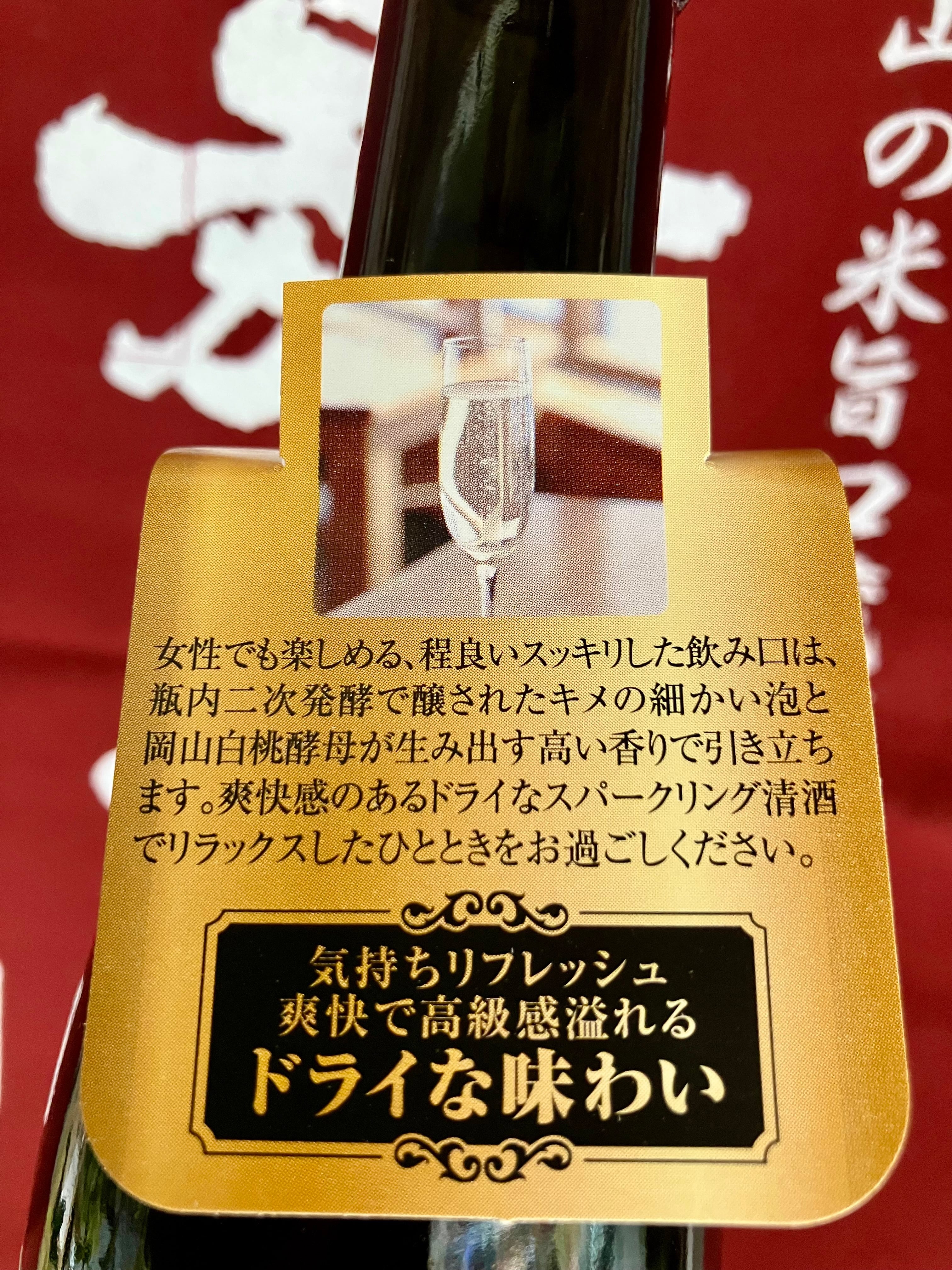 岡山県産「アケボノ米」を100%使用して、岡山県オリジナル酵母「岡山白桃酵母」で醸された、低アルコールの発泡性清酒(スパークリング日本酒)!