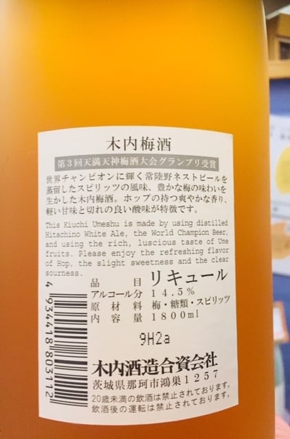 茨城県【木内酒造】日本最大の梅酒コンテストで1位獲得歴の梅酒!☆『木内梅酒 1800ml』