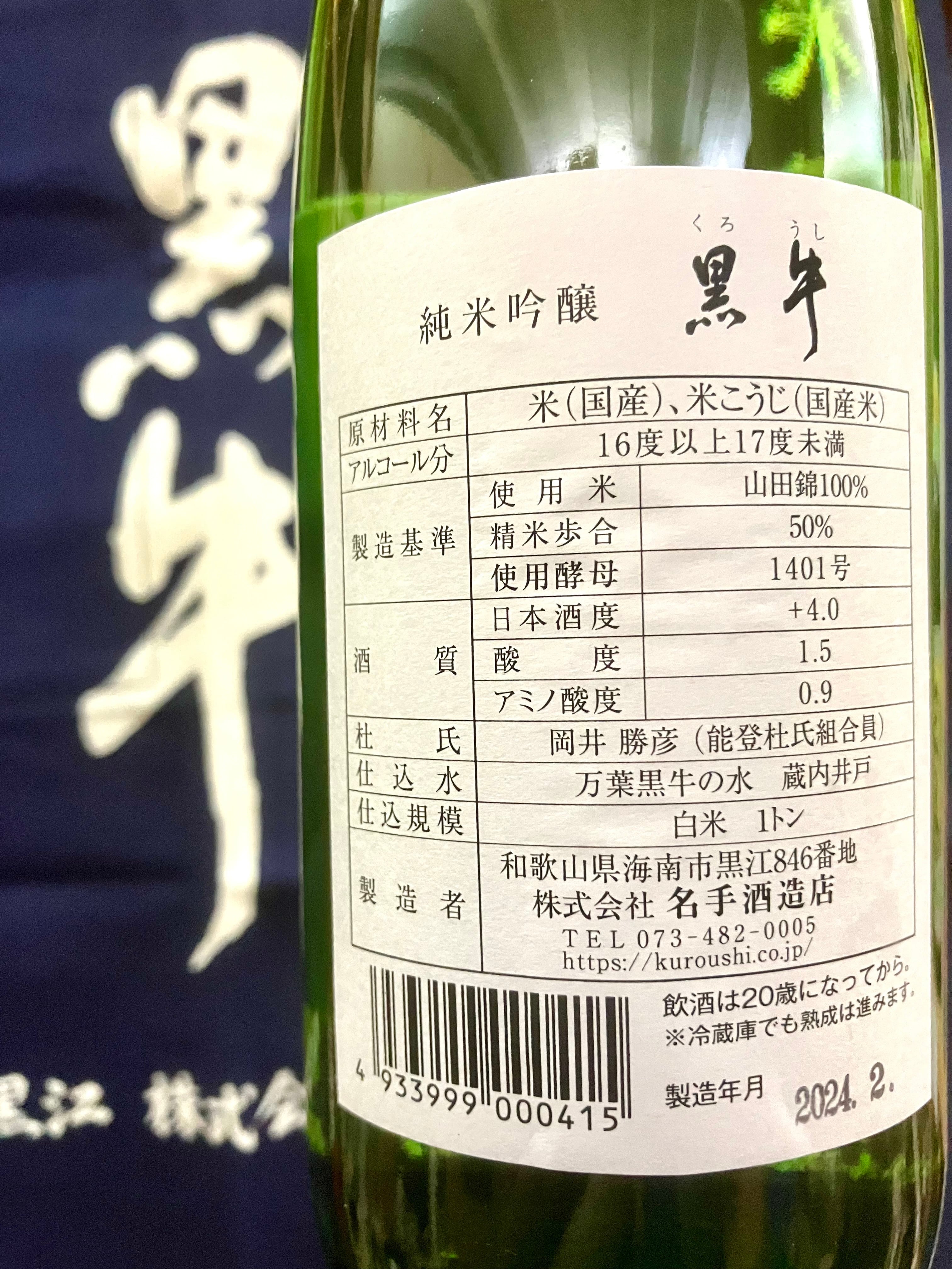 和歌山県【名手酒造】☆『黒牛 純米吟醸 720ml』