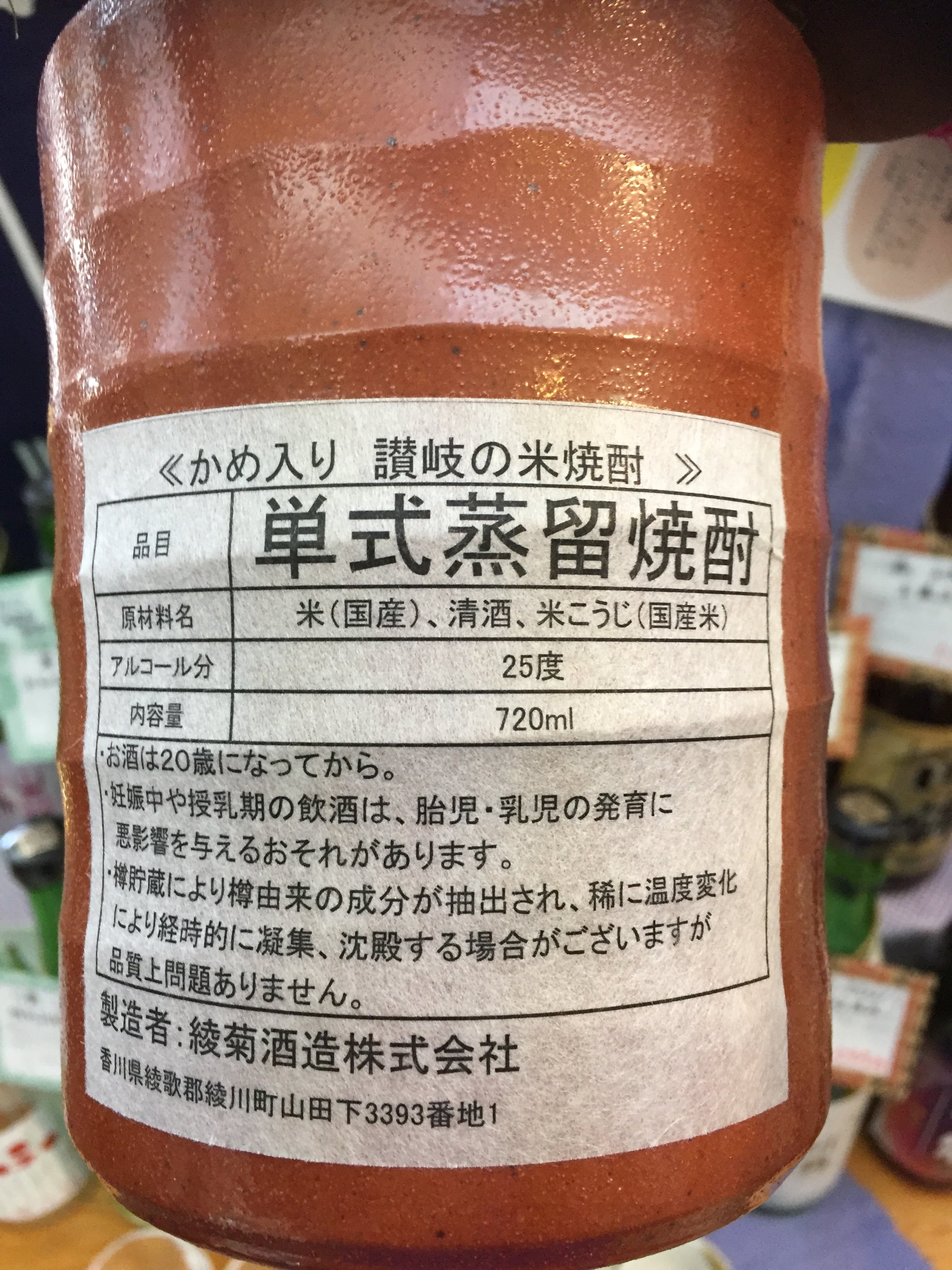香川県【綾菊酒造】『綾菊 かめ入り 讃岐の米焼酎 720ml』