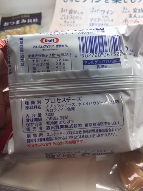 主要原材料・・ナチュラルチーズ、ホエイパウダー、乳化剤、カロチノイド色素