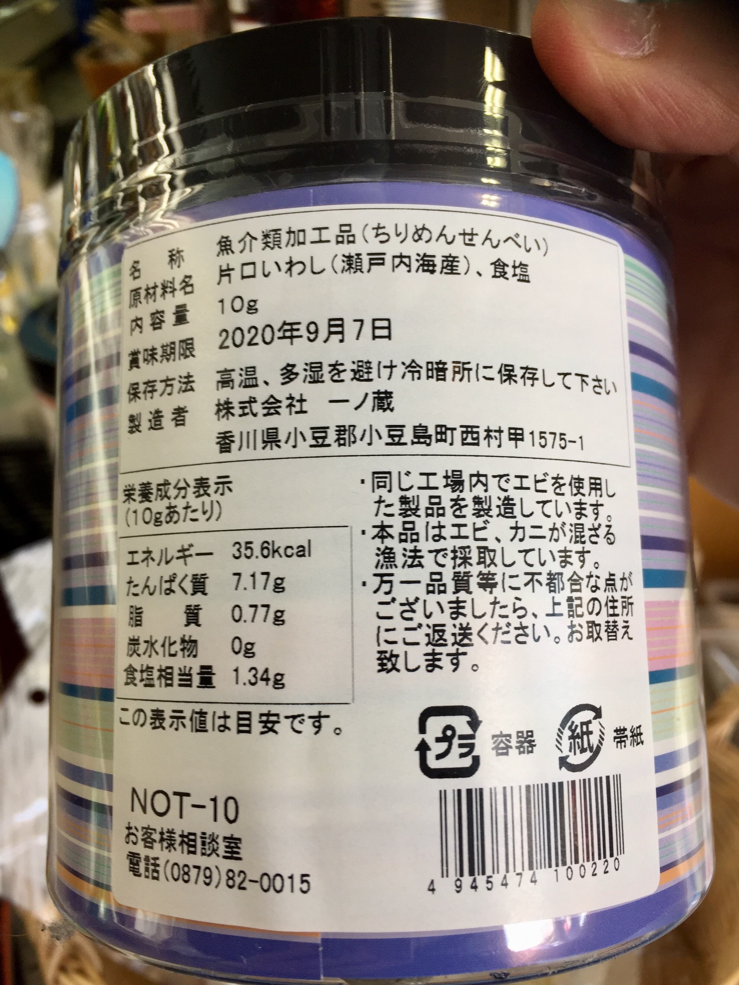 原材料名・・片口いわし(瀬戸内海産)、食塩