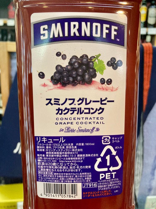 【キリン】大容量・濃縮カクテルコンク『スミノフ グレーピー カクテルコンク ペットボトル 1800ml』