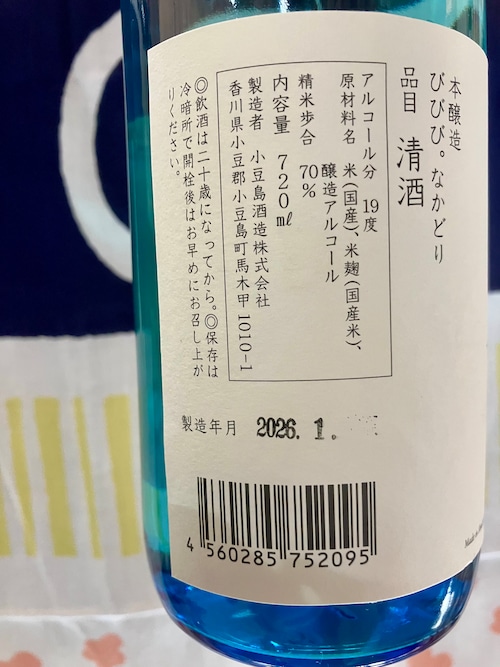 令和7BYしぼりたて!香川県小豆島【小豆島酒造】“ MORIKUNIのいいとこどり!”☆『びびび。本醸造 なかどり 720ml』