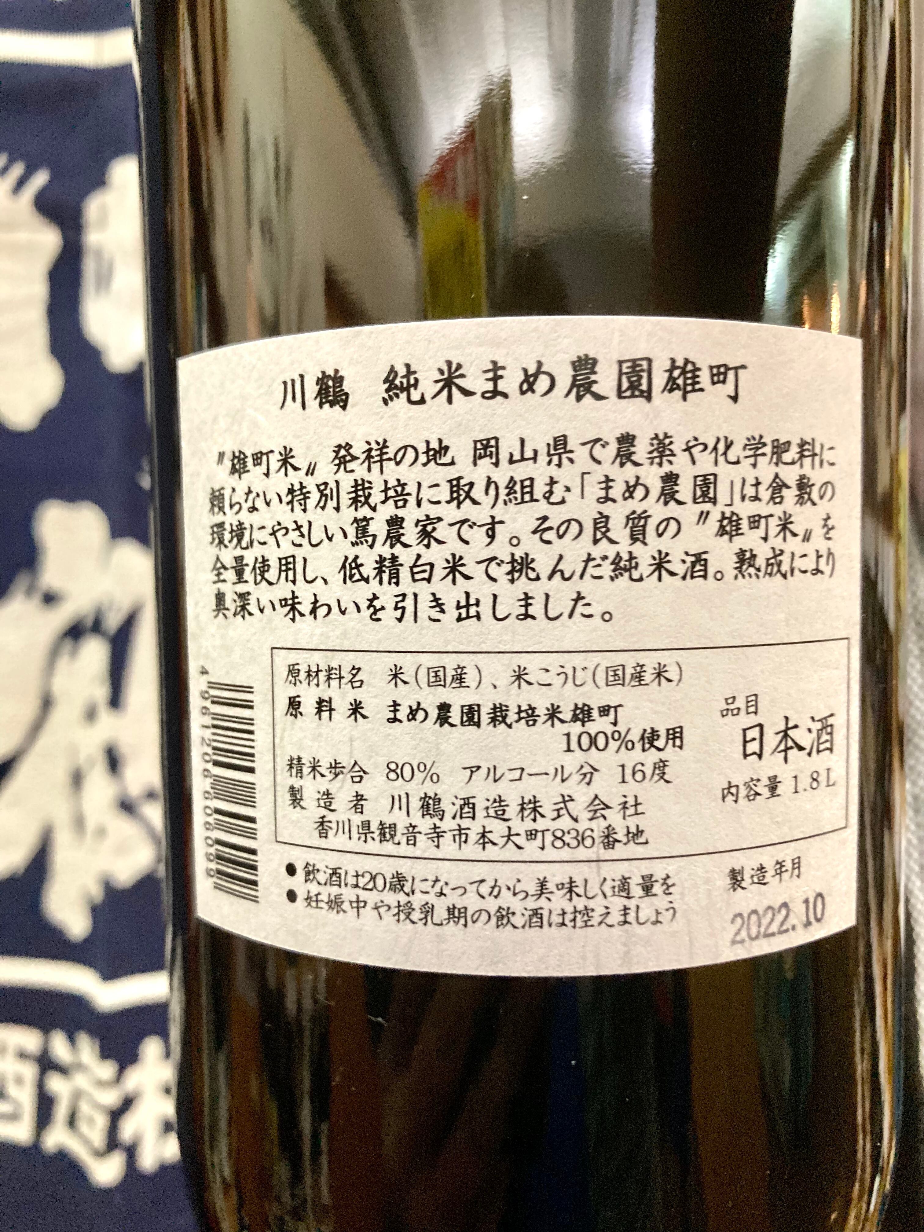 ☆『川鶴 純米まめ農園雄町 1800ml』常温発送