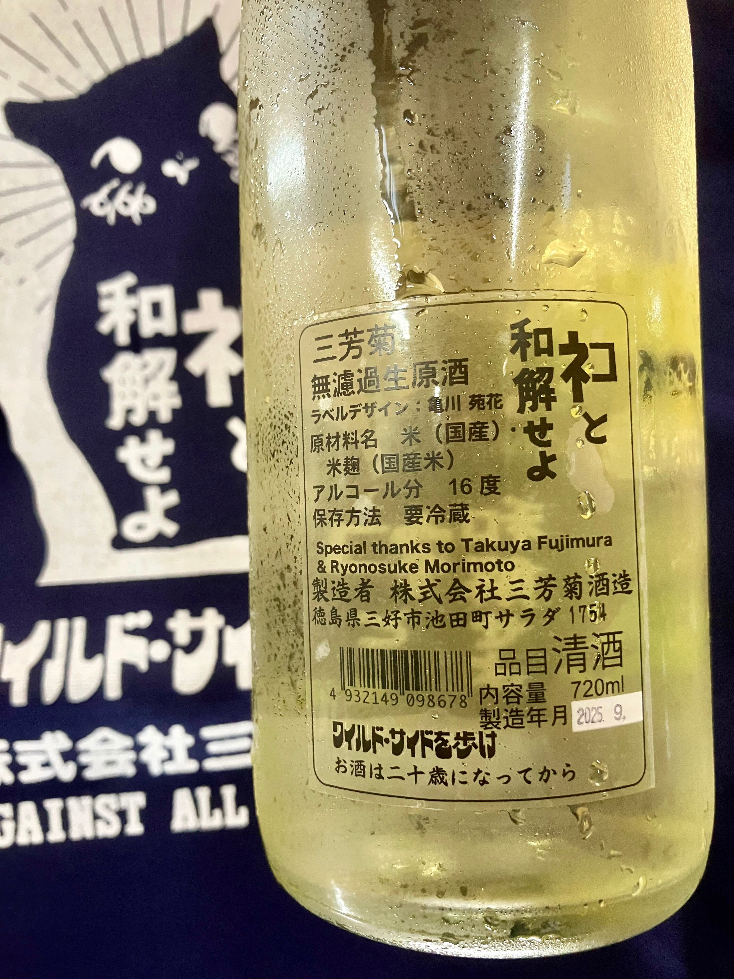 秋上がり!徳島県【三芳菊酒造】 “ワイルドサイドを歩け‼︎” ☆『三芳菊 ネコと和解せよ 〜お月見VER.〜 720ml』