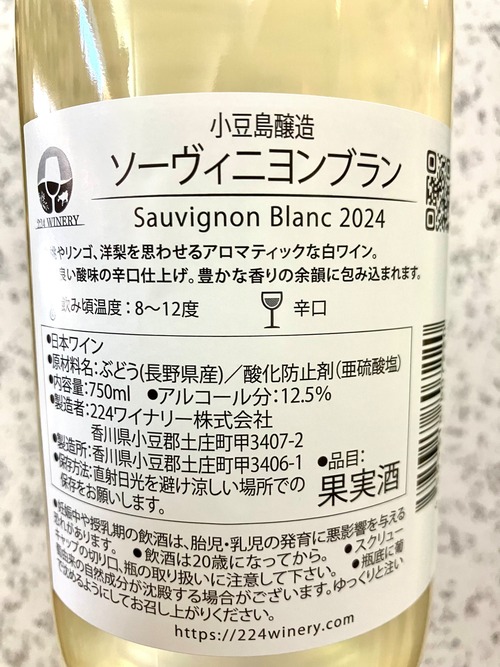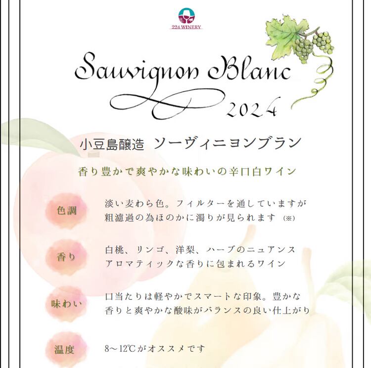 小豆島【224WINERY】白ワイン・辛口☆『小豆島醸造 Sauvignon Blanc 2024 750ml』